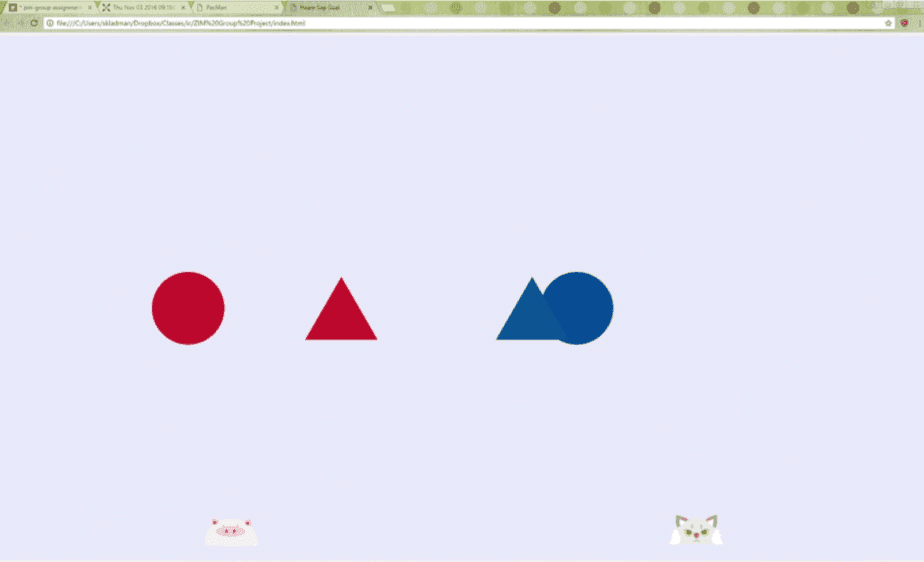 I worked on the instructions screen, background assets and animation with CreateJS libraries as well as the design and implementation of the interactive mat controller.