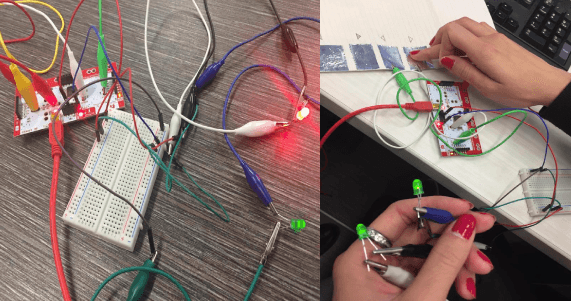 After successfully connecting one light using pin D14, we tried to use D16 to connect to extra lights using the same method. However, D16 is defaulted to mouse events, which is not used in our case. We solved this problem by extending GND and D14 to an external breadboard so that we can connect to multiple lights instead of using different pins on one board.