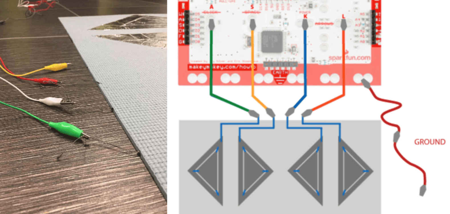 Extending the ‘ground’ of the Makey Makey by connecting alligator clips also did not seem to take away from the player’s experience.